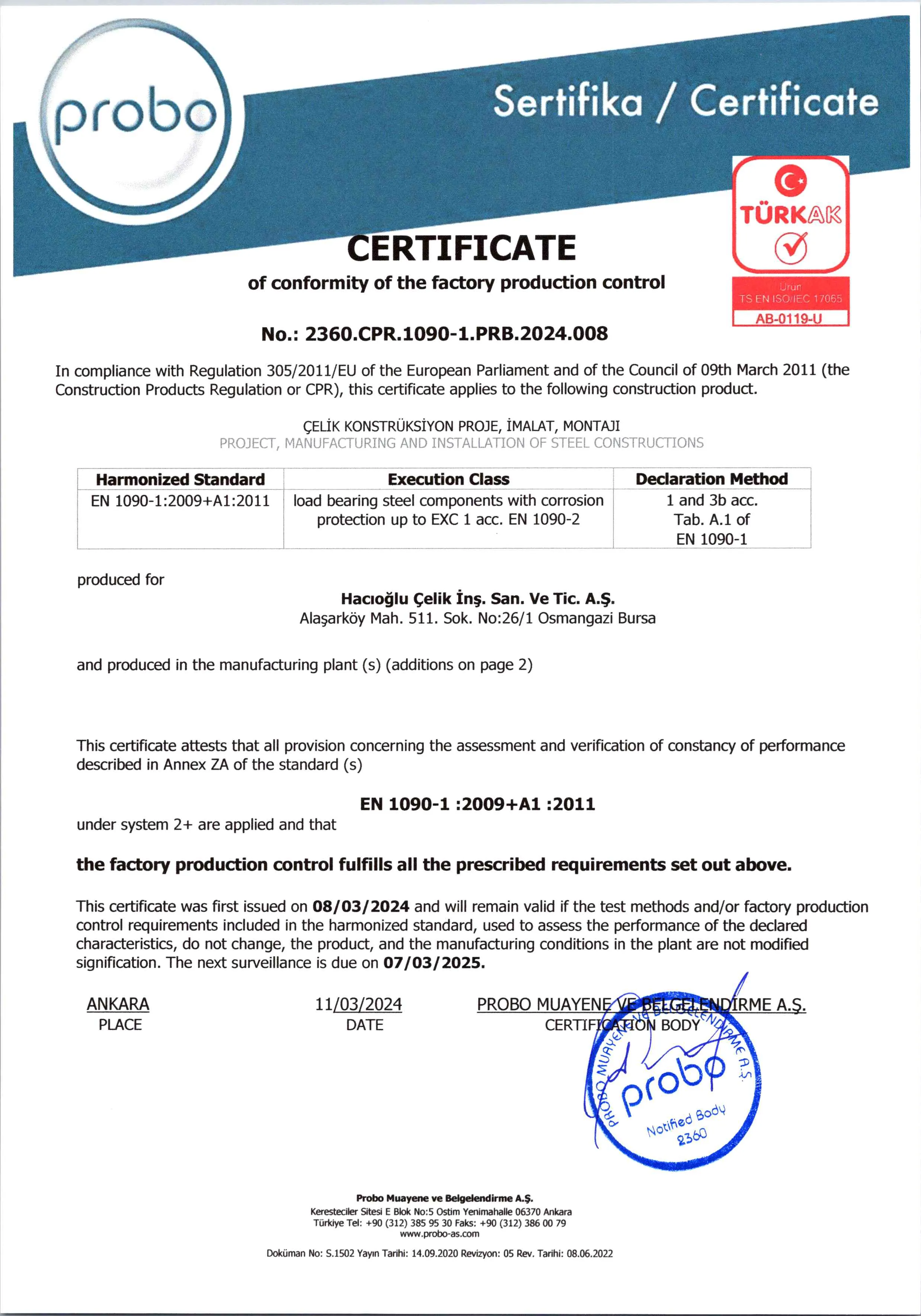 Firmamızın kalite standartlarını ve uzmanlığını belgeleyen sertifikalarımızdan bazıları aşağıda yer almaktadır.