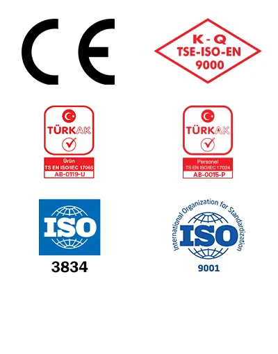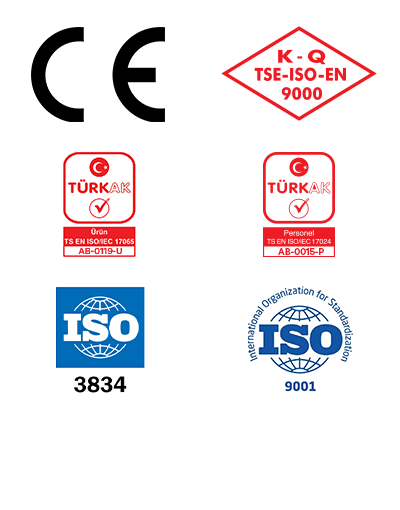 Ürünlerimizin Avrupa Birliği teknik mevzuatlarına uygunluğunu ve güvenliğini gösterir.